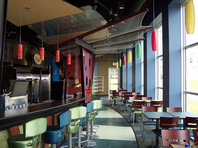 (Photo Above) Soda Fountain Type Counters with Upgraded Metal Laminate and Decorative Metal Accents with Black ABS Toe Kick.