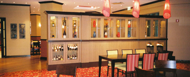 (Photo Above) Wine Wall Display Case, Lighted Wine Display Case with Lighted Interior and Locks on Doors, Upgrade Laminate Finish with Finished Crown Molding.